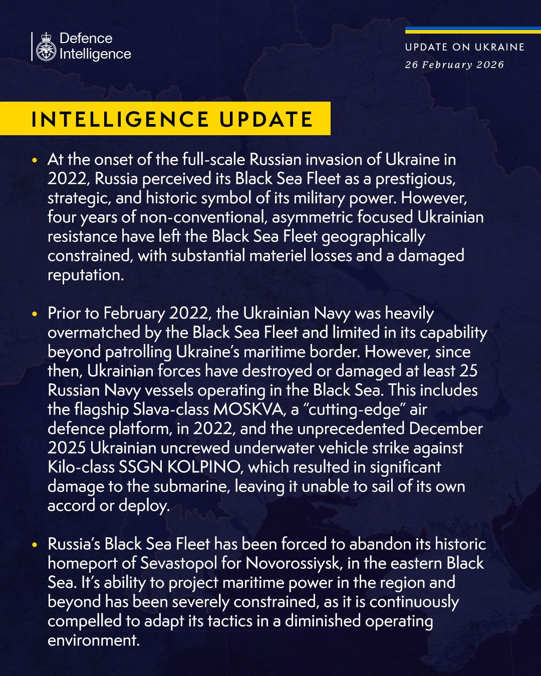 Since the start of Russia’s full-scale invasion of Ukraine, the Russian Black Sea Fleet has been significantly limited in its power, geographically constrained in its operations, and suffered serious reputational losses.