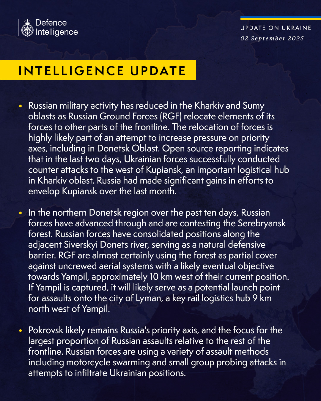 “Open sources report that over the past two days, Ukrainian forces have successfully conducted a counteroffensive west of Kupiansk, an important logistics hub in Kharkiv region, where Russia had made significant gains over the past month in attempts to encircle the city,” the British intelligence notes.
