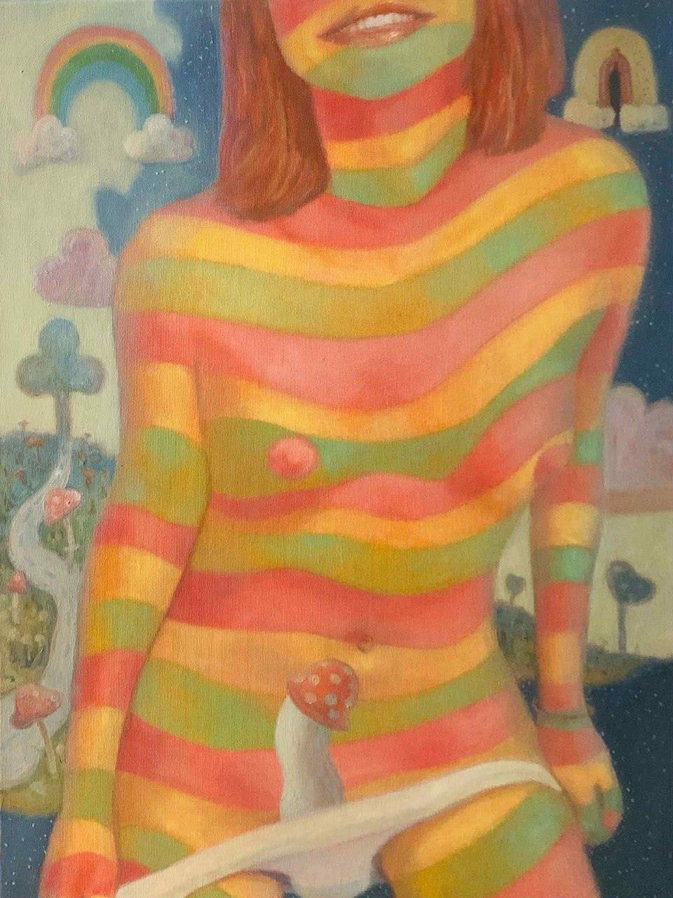 The central image of his paintings is the nude figure. However, this is not simply a depiction of the body; it is an exploration of what the artist calls his "female alter-ego." Through the curves, plasticity, and vulnerability of the female form, Andrey explores his own soul, turning hidden emotions inside out.