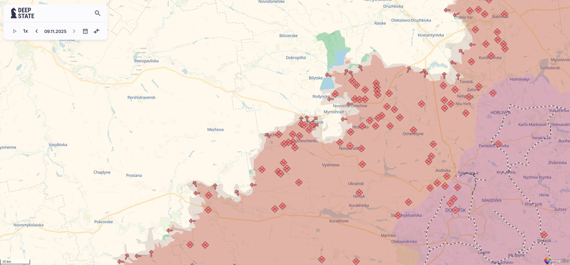 “The enemy advanced near Serednie, Maiske, Kotlyne, and Krasnohirsk,” the OSINT project DeepState reported on Telegram on Monday.