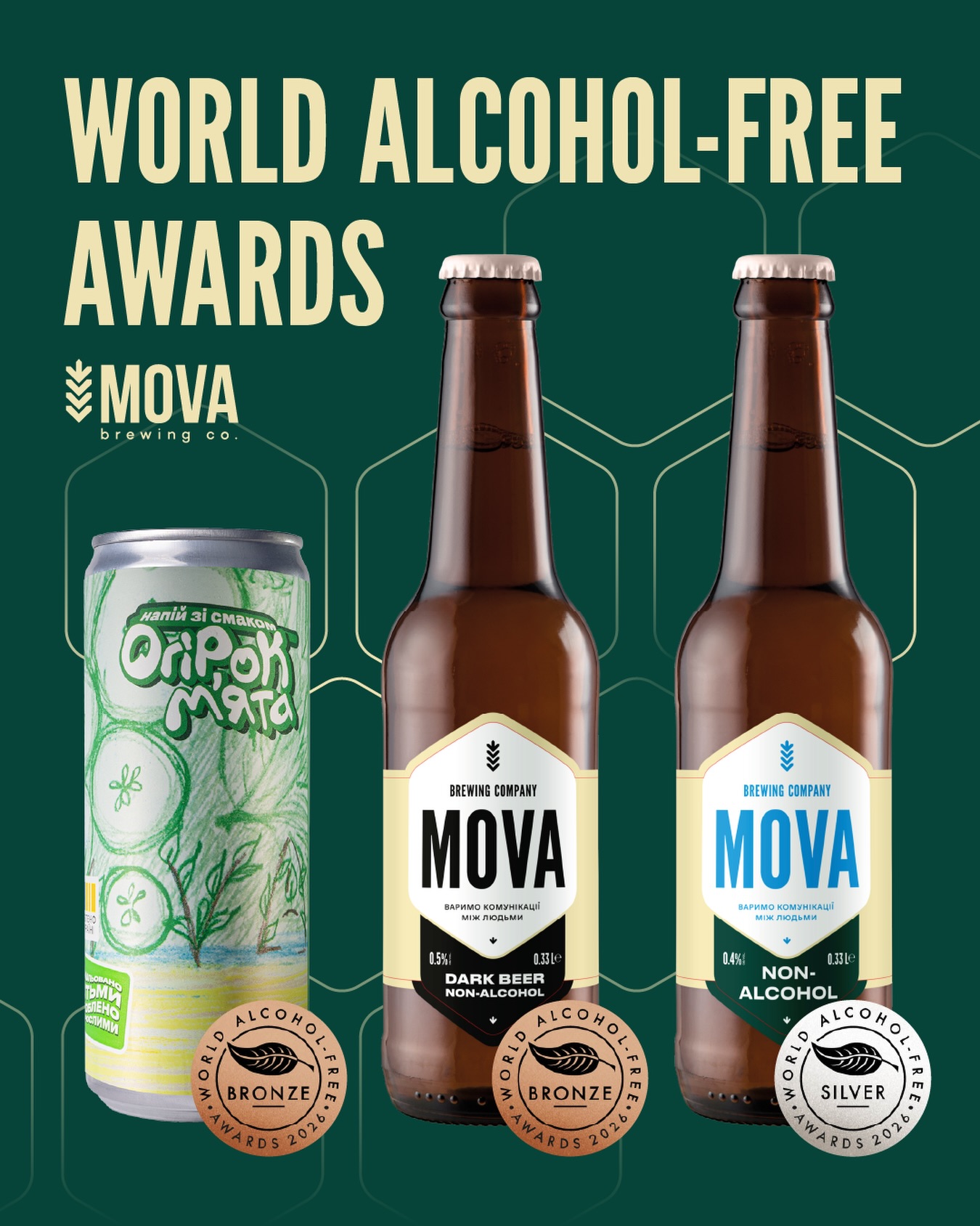 Dnipro-based brand Mova won three awards at the international tasting competition World Alcohol-Free Awards 2026. The awards went to two varieties of non-alcoholic beer and one lemonade produced by the company.