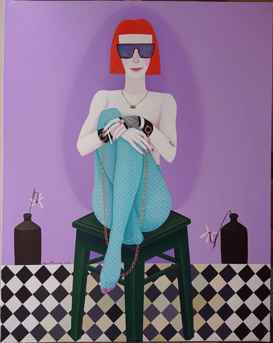 Pop Art has always sought to blur the lines between “high” and “mass” culture, transforming the ordinary into the symbolic. For Fokina, this manifests through the fearless blending of personal imagery, glamorous irony, and a sensual plasticity of color and form — where every detail feels like a quote from modern life. Her painting doesn’t merely speak the language of Pop Art — it lives in it, adding to the style a distinctly feminine, emotional, and sincere voice.
