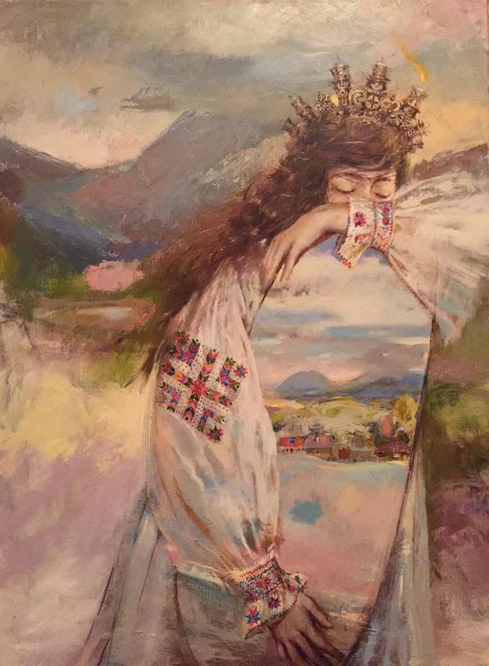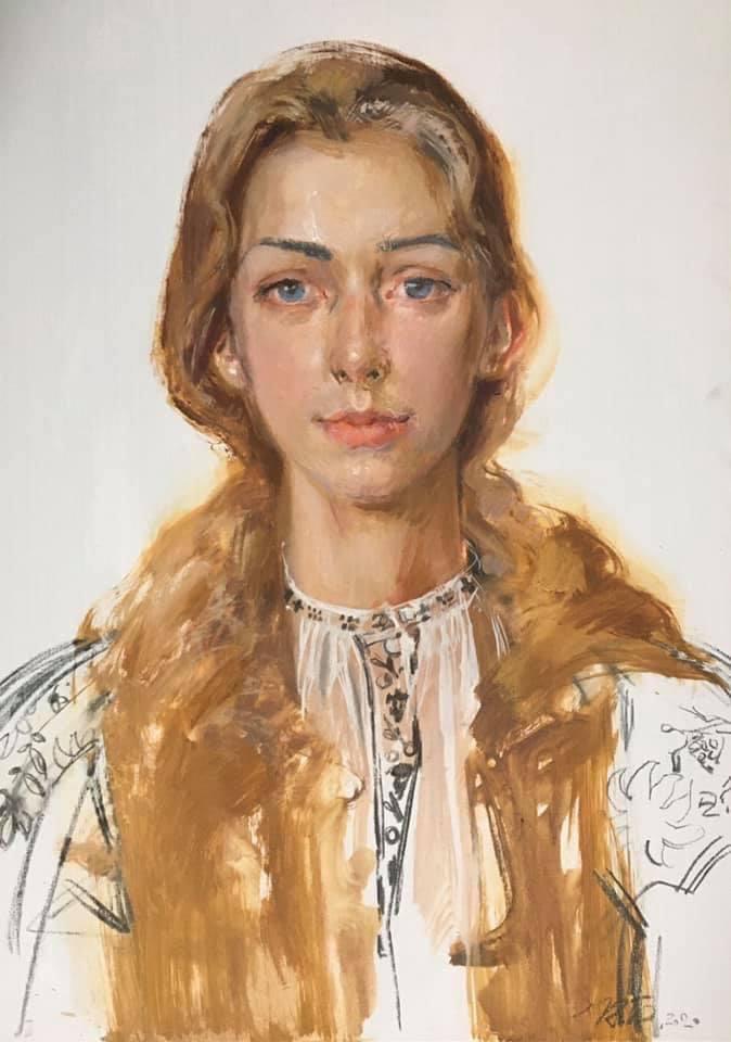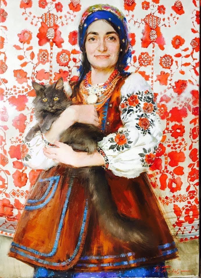 In Kateryna Biletina’s work, folk art is not merely an aesthetic choice but a form of dialogue — between past and present, between individuality and cultural memory. The traditional costume in her portraits becomes a symbol of identity and a tool of visual storytelling. Her paintings invite viewers to pause and see the everyday as something layered with history, beauty, and continuity.