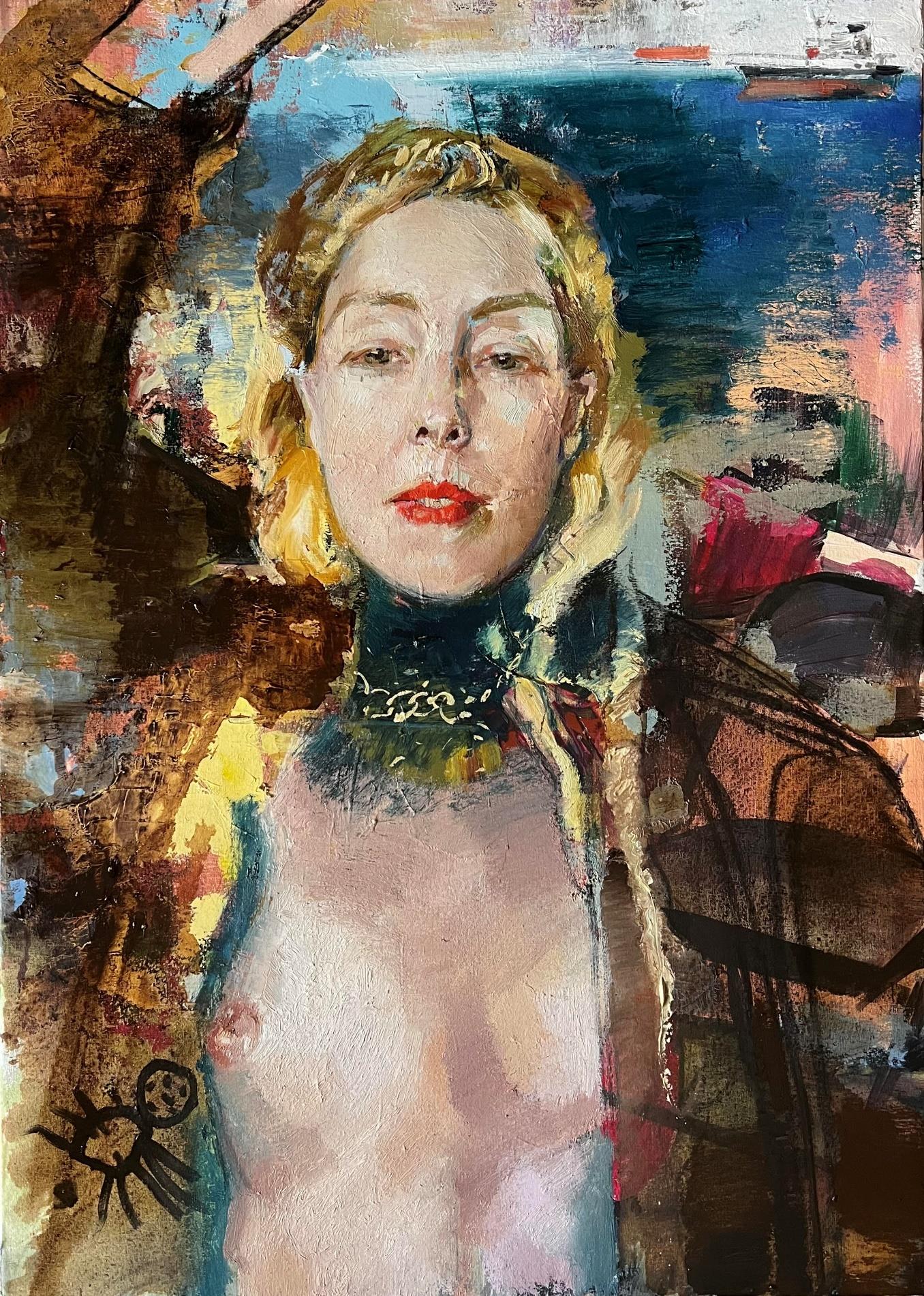 I rarely paint self-portraits, so it would be a portrait of a contemporary woman presenting herself as part of tradition.