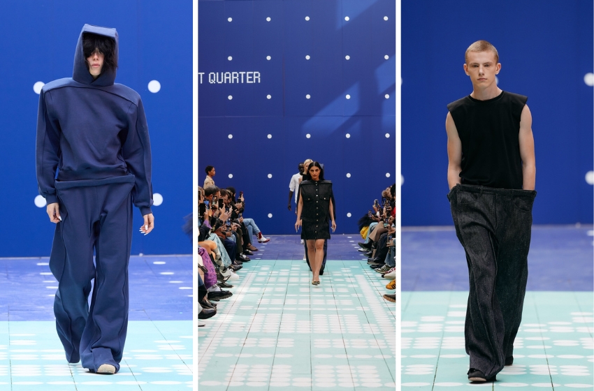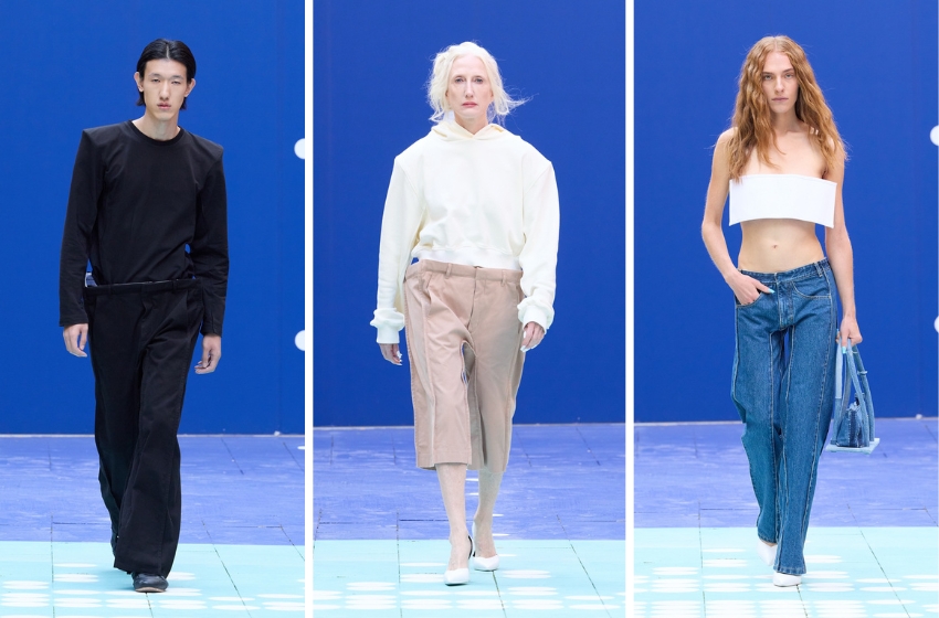 The collection also incorporates post-branding concepts: logos are absent, appearing only as hints, such as outlines, tag silhouettes, and patches—branding without the actual sign. This season, KSENIASCHNAIDER also debuted a collaboration with Lee Cooper, combining the heritage of British denim with the avant-garde upcycling aesthetic of the Ukrainian brand. This joint effort marked the brands’ debut on the London Fashion Week runway.