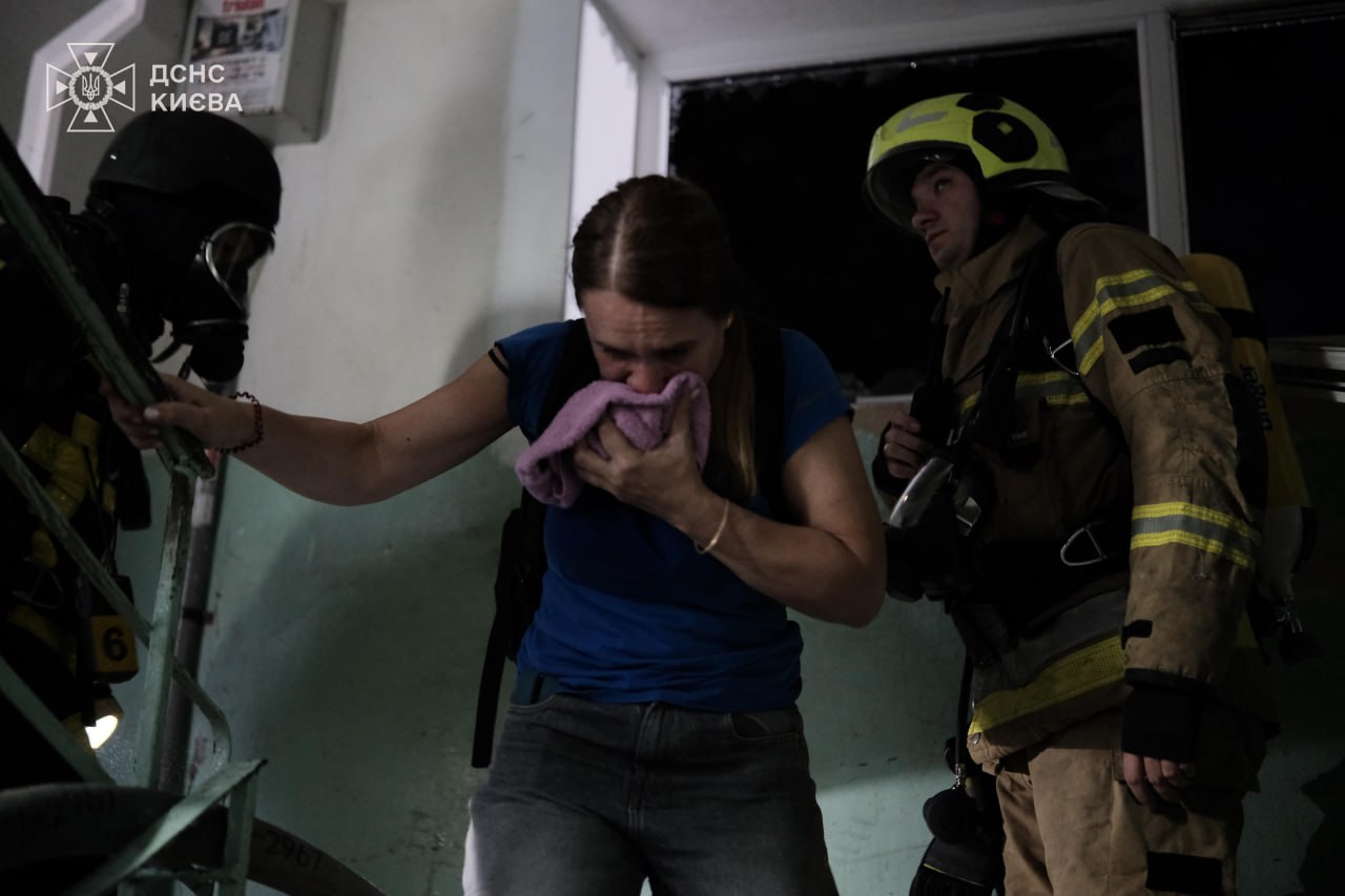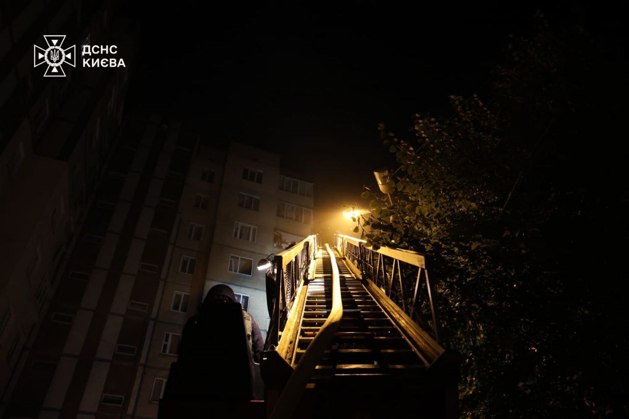 In the Darnytskyi district, a four-story residential building was hit – a fire broke out on two floors, and there was partial destruction.