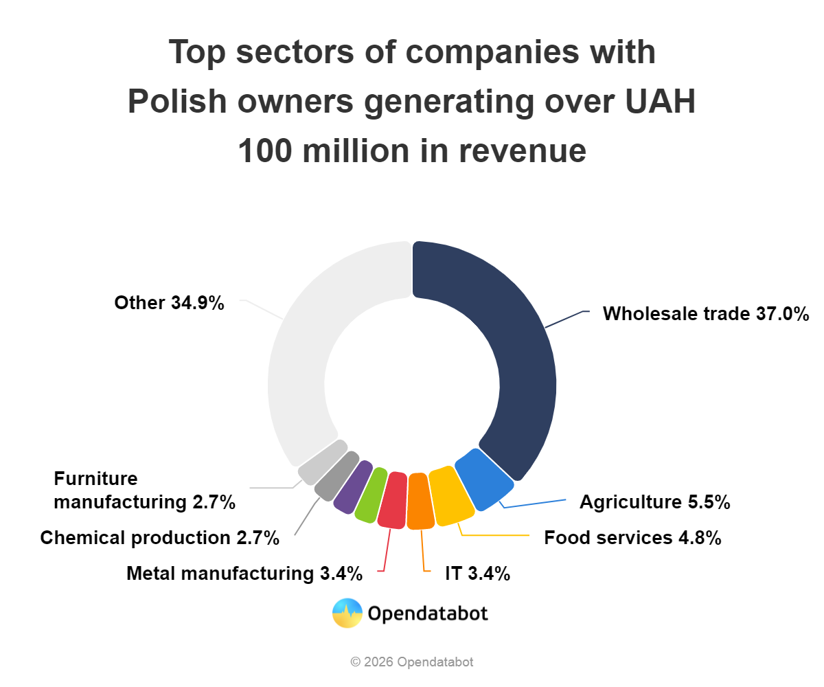 It is followed by Radekhivskyi Tsukor, which posted over UAH 10 billion in revenue. Other major players include furniture manufacturer Modern-Expo and auto parts distributor Inter Cars Ukraine, the latter being the only Polish-beneficiary company included in the 2026 Opendatabot Index.