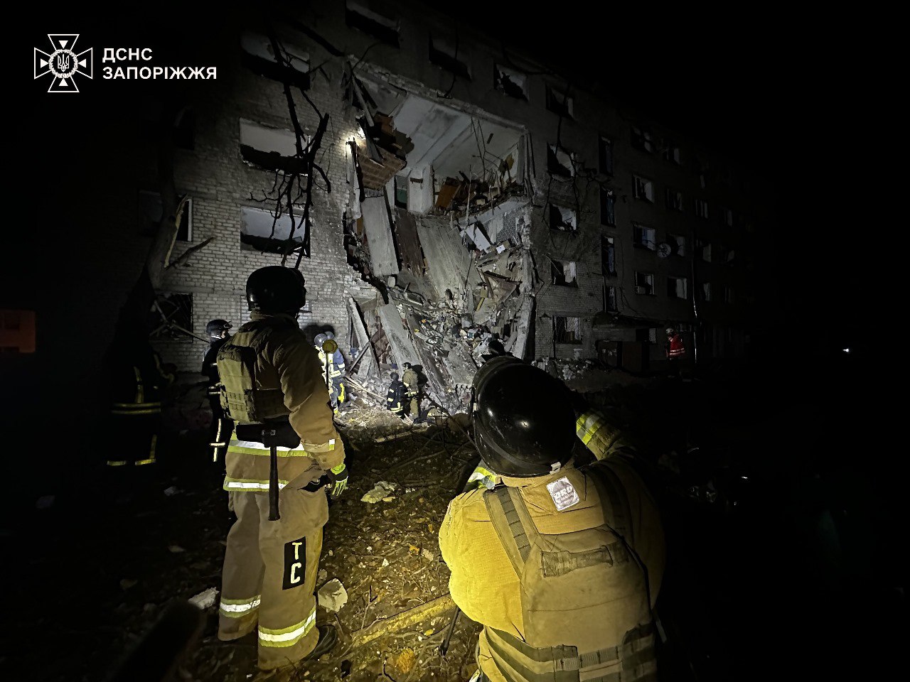 “The enemy attacked Zaporizhzhia and the Zaporizhzhia district for several hours. A dormitory was hit — several floors were destroyed,” he wrote.