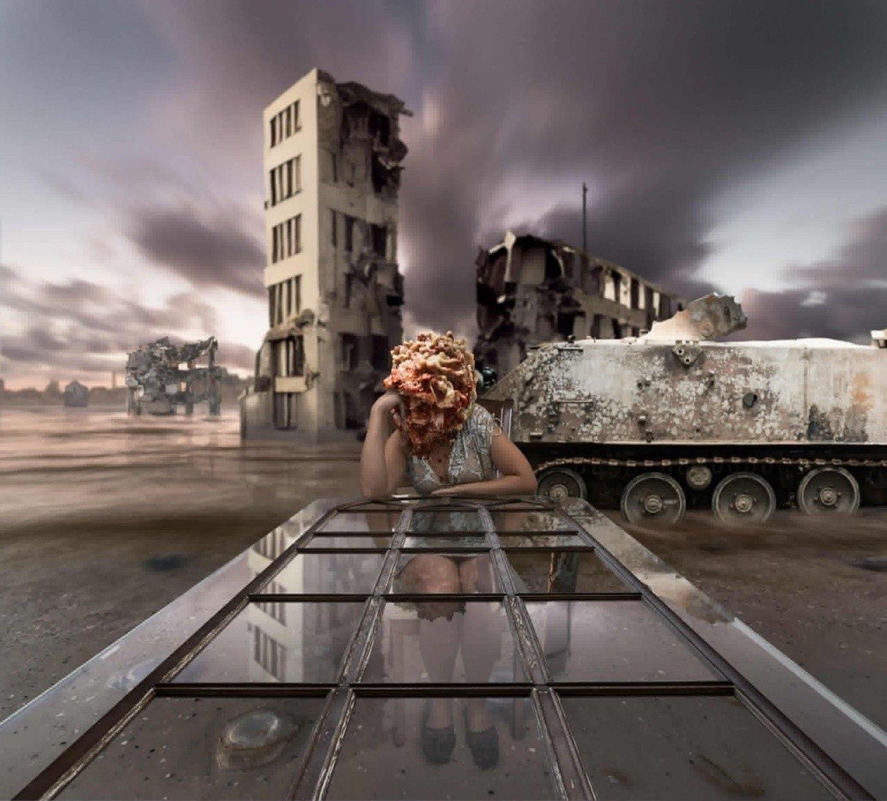 However, Russia's full-scale invasion radically altered the context of his art. The surreal nightmare he had previously constructed only in his digital works suddenly spilled out onto the streets of his hometown. Having survived the grueling months of Kherson's occupation,