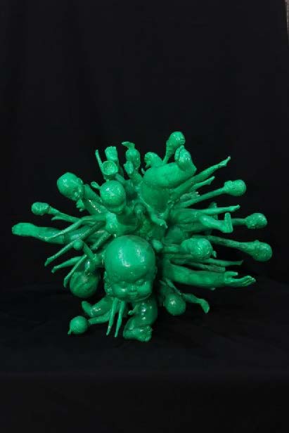 Artist's commentary: "The full title of my exhibition sounds like this: 'MUSEUM of Hellish Dolls Demons of the Master of Marionettes Killer of Mannequins Seryoga Konyakhin, Biomechanical Constructivism, 108, Guru I AM GOD: THE ART OF WAR.' Why biomechanical? Because I use doll body parts. Why constructivism? Thanks to similar joints from these parts, new forms can be constructed: multi-armed and multi-headed demons or deities. And 108 is a sacred number in Eastern religions, which I adhere to.