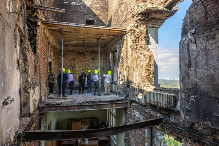 The journalists visited sites of Russian crimes in Bucha and Irpin in Kyiv Oblast and saw firsthand the damage caused by recent Russian strikes on Kyiv’s civilian infrastructure, including the building of the Cabinet of Ministers of Ukraine.