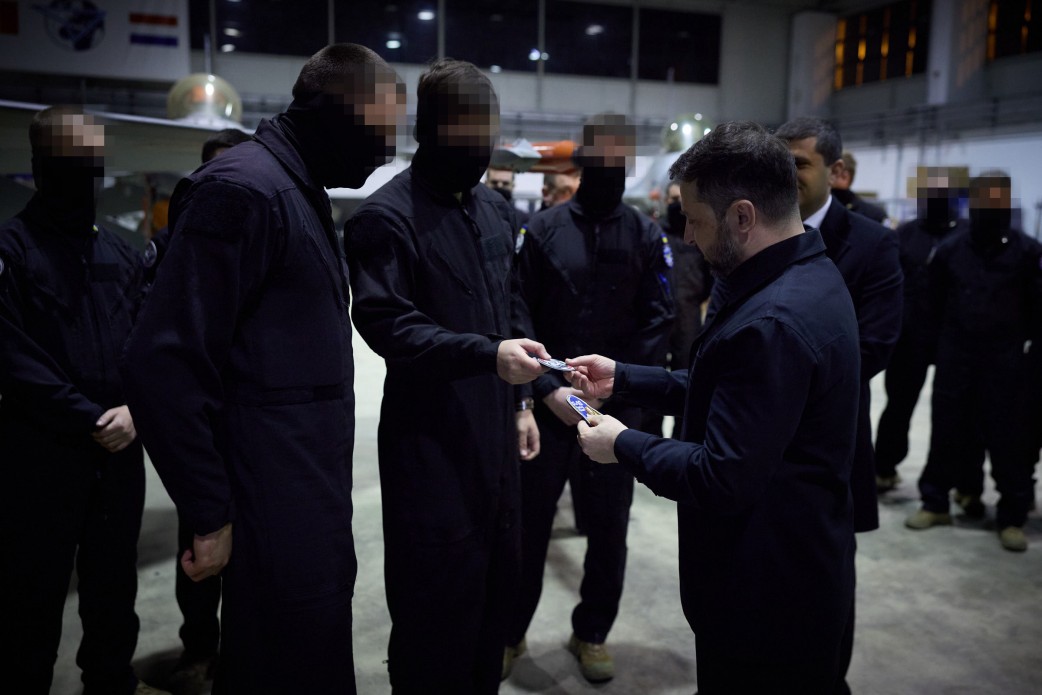 In the hangar where the F-16s are maintained, the President spoke with the Ukrainian service members about the specifics and conditions of their training program. They also discussed the challenges our pilots face and how the state can help address them.