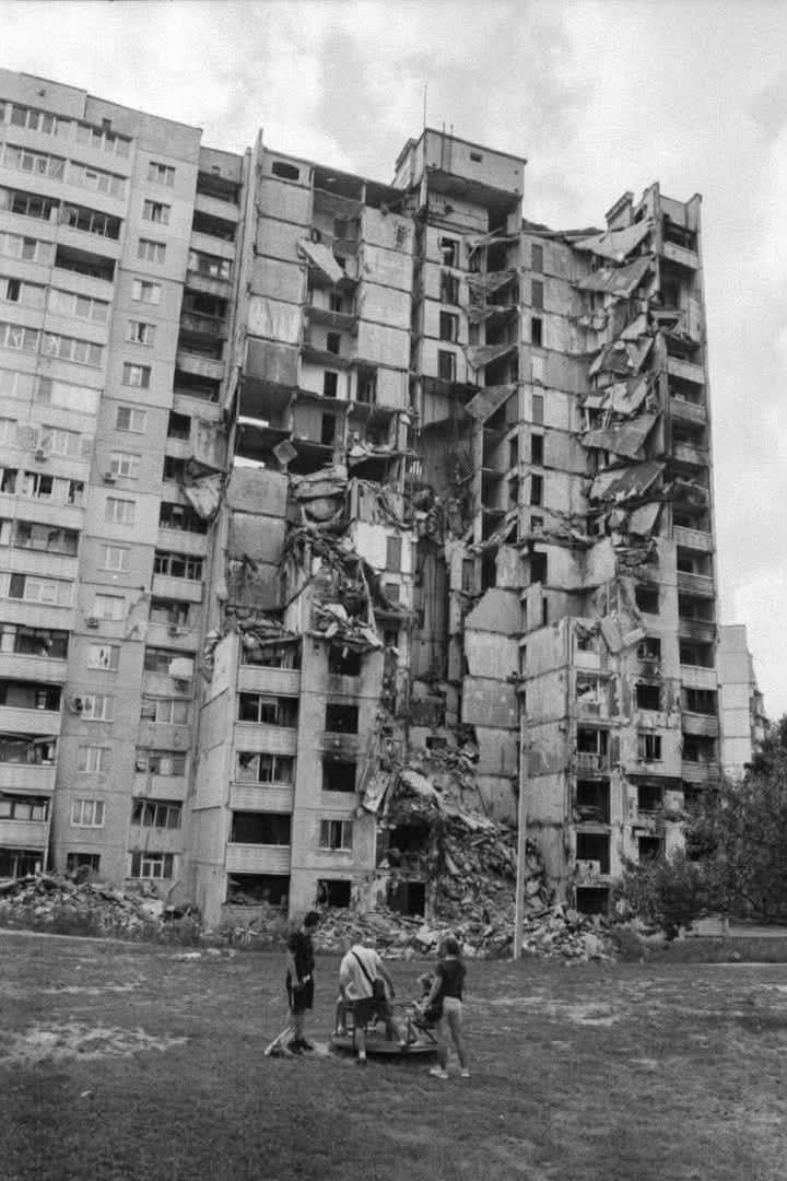 Dry documentary ends in shots like this. I deeply sympathize with people forced to endure such tragic events, when, unable to even walk, they are literally carried out of their own apartments onto the street.