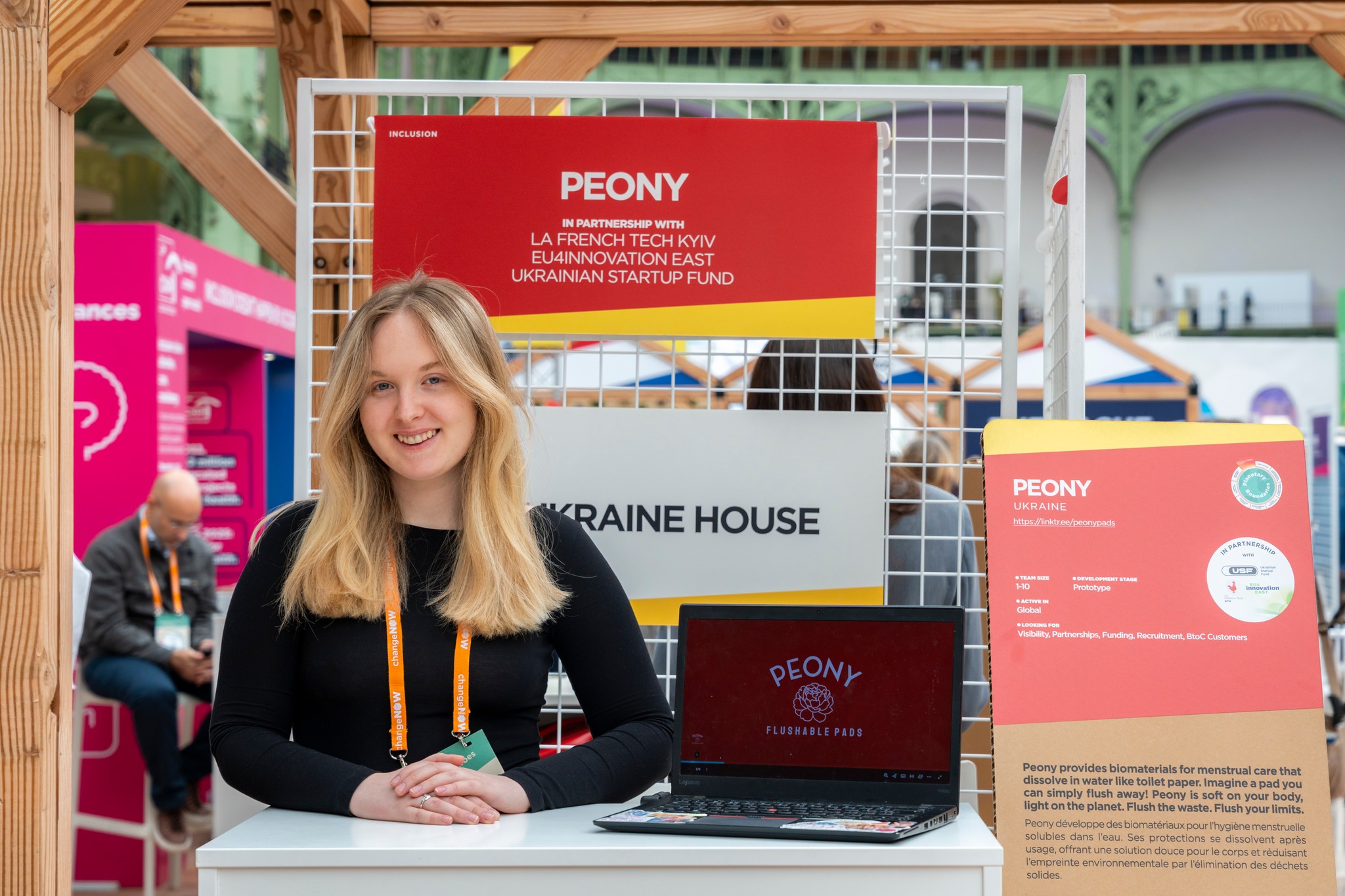 The Ukrainian startup S.Lab – Sustainable Laboratory, which develops eco-friendly packaging without plastic, was also presented at a separate stand. The team pitched at the ChangeNOW 2026 Pitch Awards Ceremony and won first place in the “Circular Economy” category.