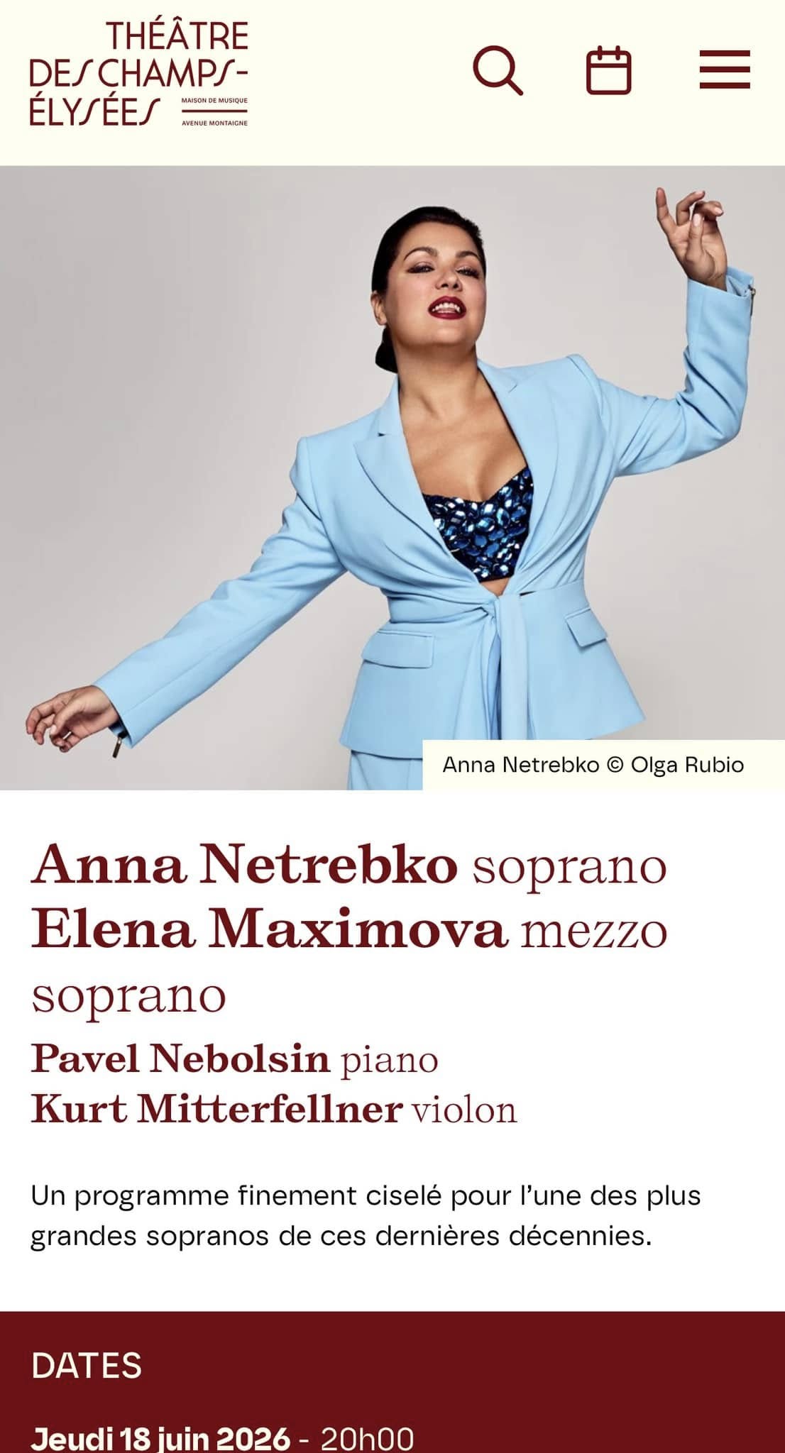 The programme includes performers such as Anna Netrebko, Alexandra Dovgan, Nikolai Lugansky, and Dmitry Maslov. The Embassy of Ukraine in France strongly protested this cultural season, describing it as an attempt to promote the ideas of the “Russian world” and whitewash Russian aggression on the international stage. Diplomats emphasized that measures are already being taken to prevent the popularization of these artists’ work.