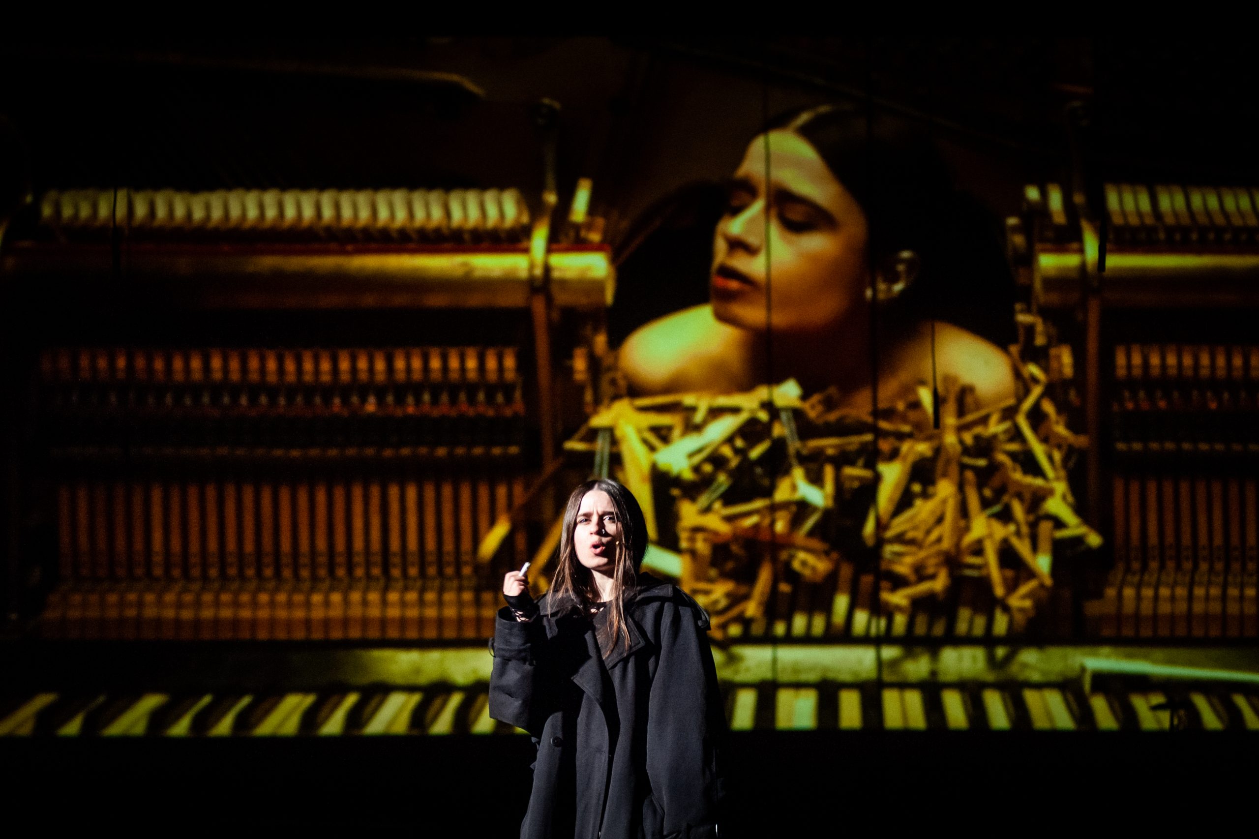 To convey the ecological crisis, the opera employs innovative techniques involving voice, body, and spatial performance. Visual elements are also central, featuring video footage shot in the fall of 2023 on Khortytsia Island. The materials document the environmental aftermath of the disaster while simultaneously showing the slow return of lands previously submerged under an artificial reservoir to their natural state.