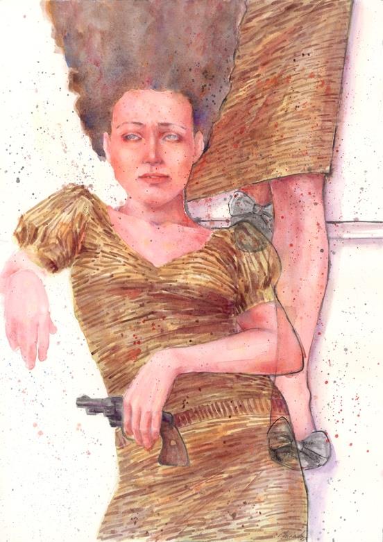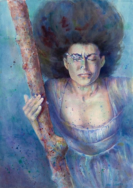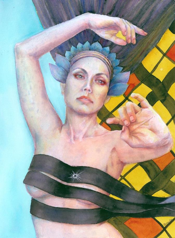 6. You say that female strength can be gentle. Show us a piece where the softness of watercolor becomes stronger than metal.