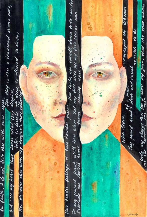 At the core of Yana's artistic method is the concept of the "multi-perspective gaze." Her portraits often depict faces with multiple pairs of eyes or fragmented imagery. This is not merely a visual device, but an attempt to capture the multifaceted nature of the human personality, the simultaneous existence of several subpersonalities within us, and the struggle between social masks and our genuine essence.